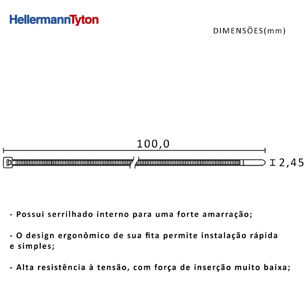 Abraçadeira Flexível Poliamida 100x2,5x3,7mm Natural Embalagem Com 100 Unidades Série T Hellermann