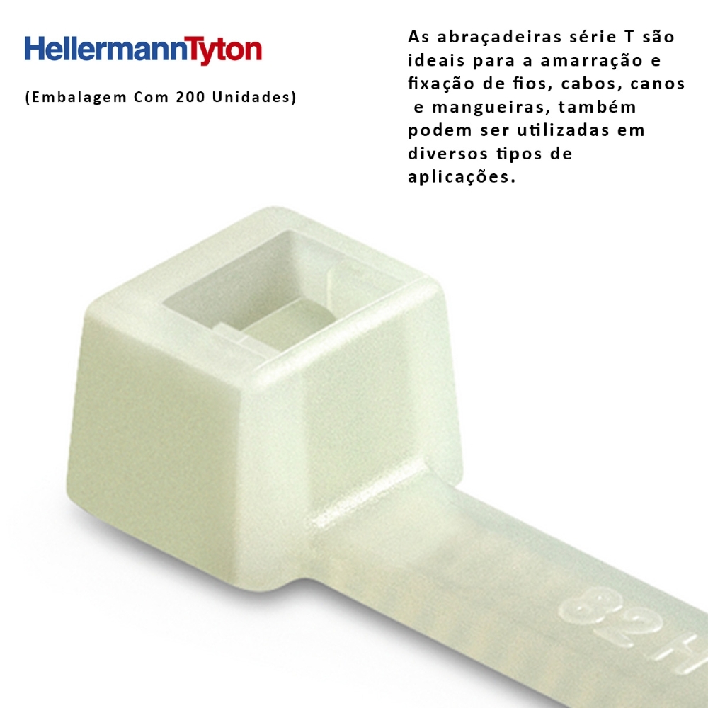 Abraçadeira série T para amarração e fixação de fios, cabos, canos e mangueiras.