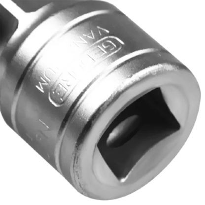 Aço Gedore-Vanadium. Acabamento niquelado e cromado. Para acessórios manuais com encaixe quadrado 19,05 mm (3/4”), conforme DIN 3120, ISO 1174.