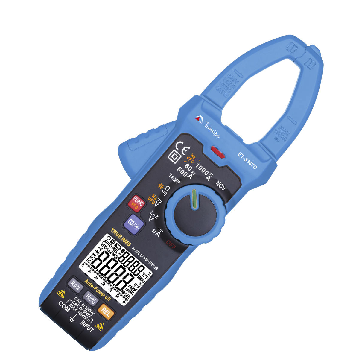 Diferencia-se pelas medidas True RMS, tensão e corrente DC/AC, resistência, capacitância, frequência, temperatura, duty cycle, LoZ, testes de continuidade, data hold, modo relativo e detecção de tensão sem contato (NCV).
