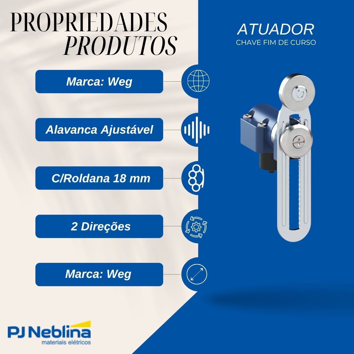 - Componente WEG: Garante confiabilidade e compatibilidade com chaves de fim de curso WEG.