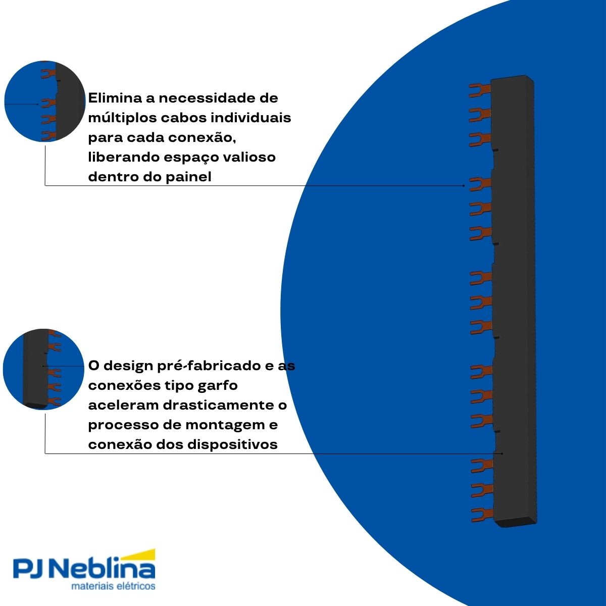 - Redução de Tempo: Simplifica a instalação, eliminando pontes de fiação individuais.