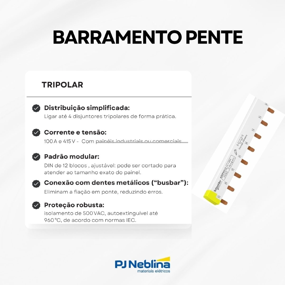 • Solução ideal para eletricistas e integradores que buscam rapidez, organização e segurança na montagem de barramentos.