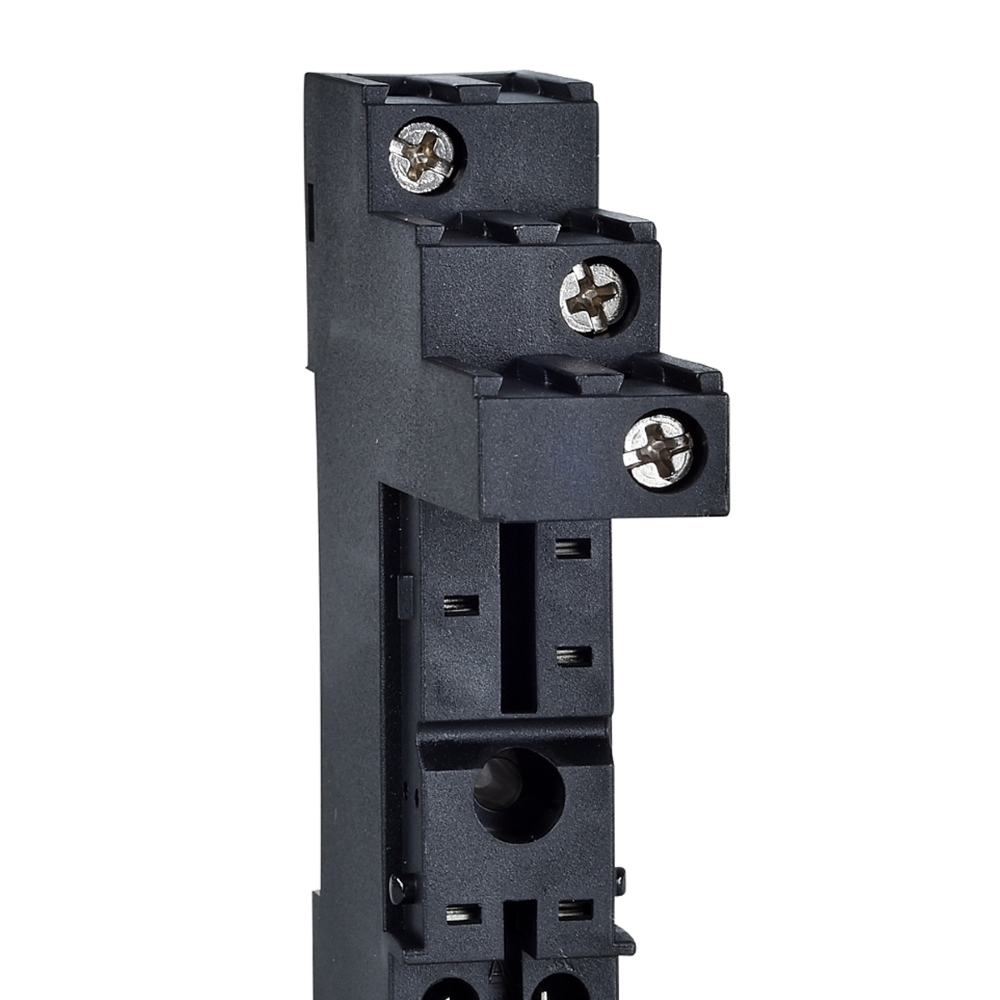 "Esta tomada de plug-in Harmony RSB tem uma tensão nominal de 250V AC com uma classificação de saída de 12A." "Este soquete de relé plug-in é compatível com a gama RSB de relé plug-in de interface." "Ele tem uma grande variedade de contatos para uso de alta corrente nominal com design compacto que permite uma instalação flexível e fácil em trilho DIN." "Isso ajuda a reduzir o tamanho dos gabinetes e aumentar a confiabilidade da máquina, você pode montar praticamente em qualquer lugar." "É compatível com relé de controle plug-in." "Permite fácil instalação e conexão ao relé de seu soquete." "Workability para sistemas automatizados lógicos com fio para complementar as funções de controladores lógicos programáveis ââindustriais (PLCs)."