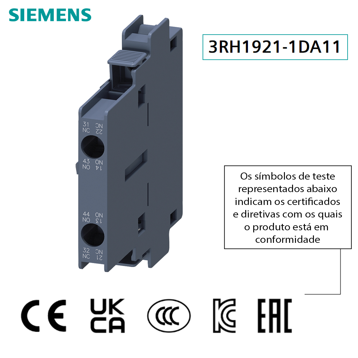 Com mais de 100 anos de história e experiência de atuação no Brasil, a Siemens visa desenvolver e gerar o que importa para a sociedade. Onde a excelência em eletrificação, automação e digitalização são destinadas, direcionadas e transformadas em soluções para levar a engenhosidade ao nível mais alto, de forma acessível a todos os consumidores. Conhecendo o Bloco Contato Auxiliar, você conhece a excelência e a perfeição garantida pela Siemens.
