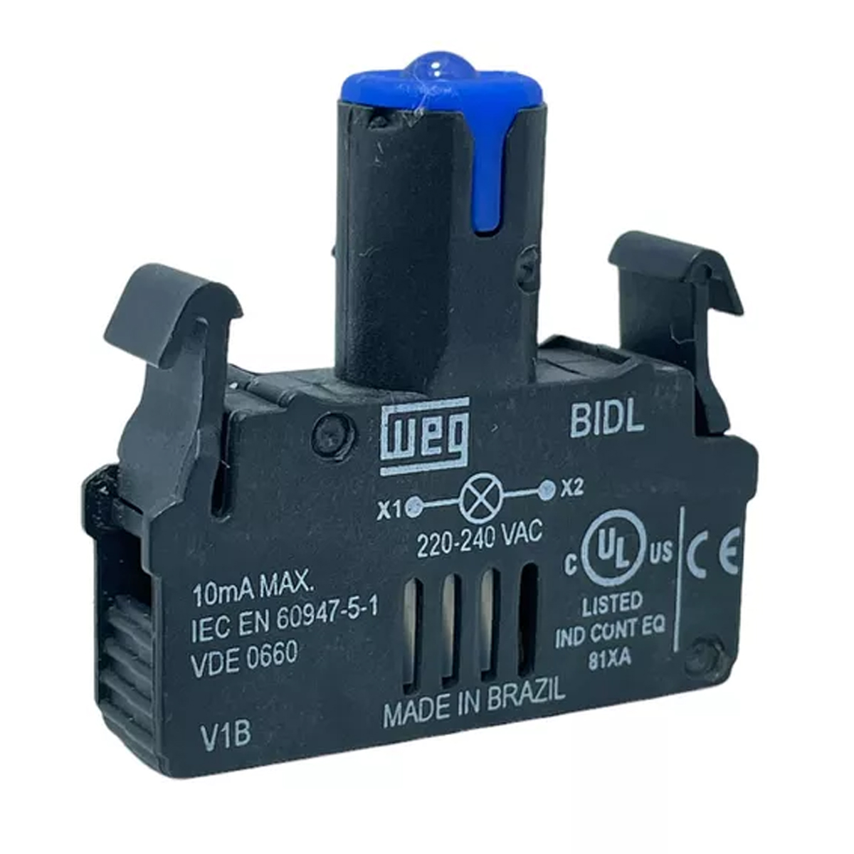Bloco Contato Iluminado Led Para Botão/Sinaleiro 220-240V Azul Terminal Parafuso Weg