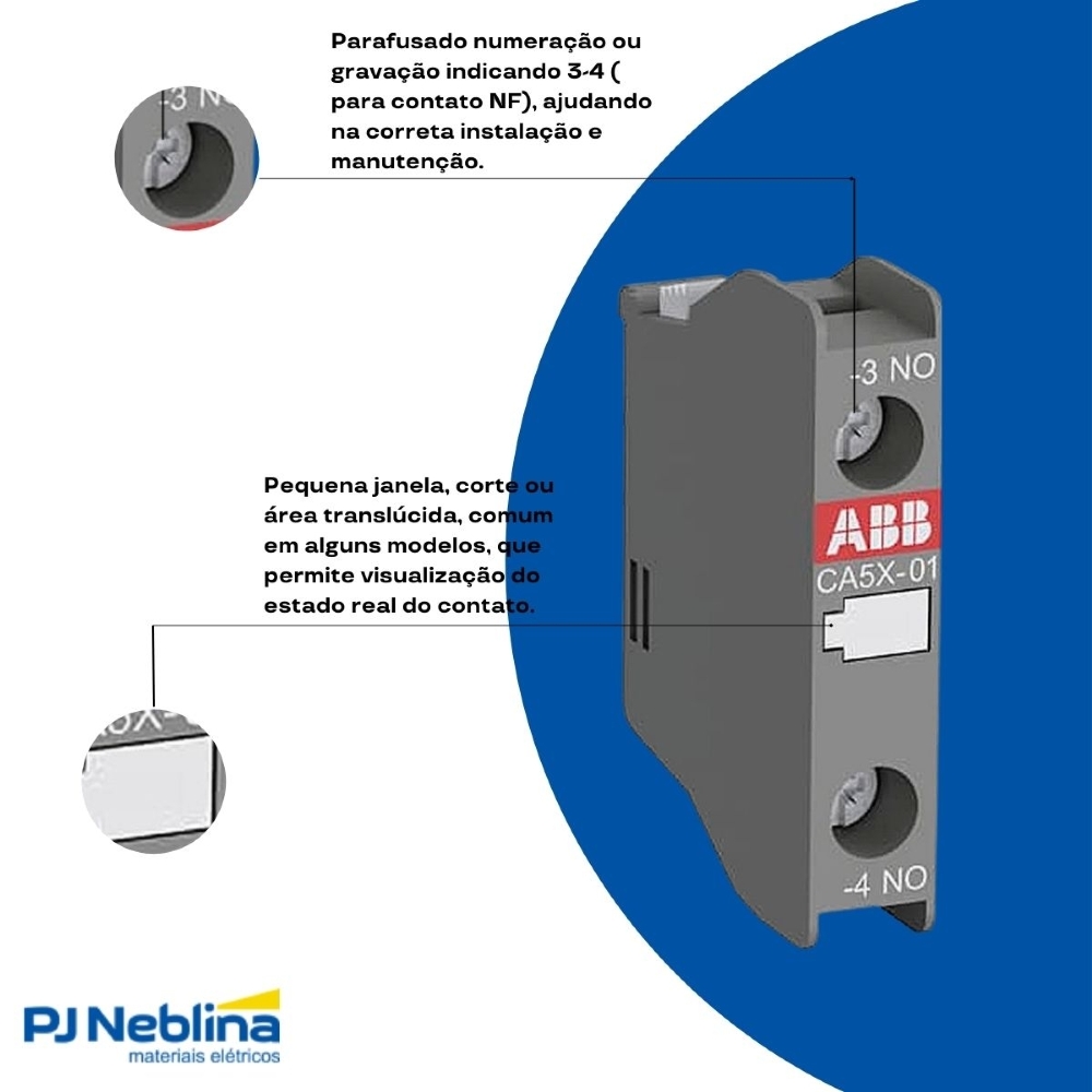 Um Bloco de Contato Auxiliar, permite o aumento do número de contatos auxiliares integrados de um Contator de Potência. Por sua vez, acoplado ao Contator de Potência, passa a ter os mesmos comportamentos dos contatos originais, expandindo as capacidades de automatização no comando a ser executado.
