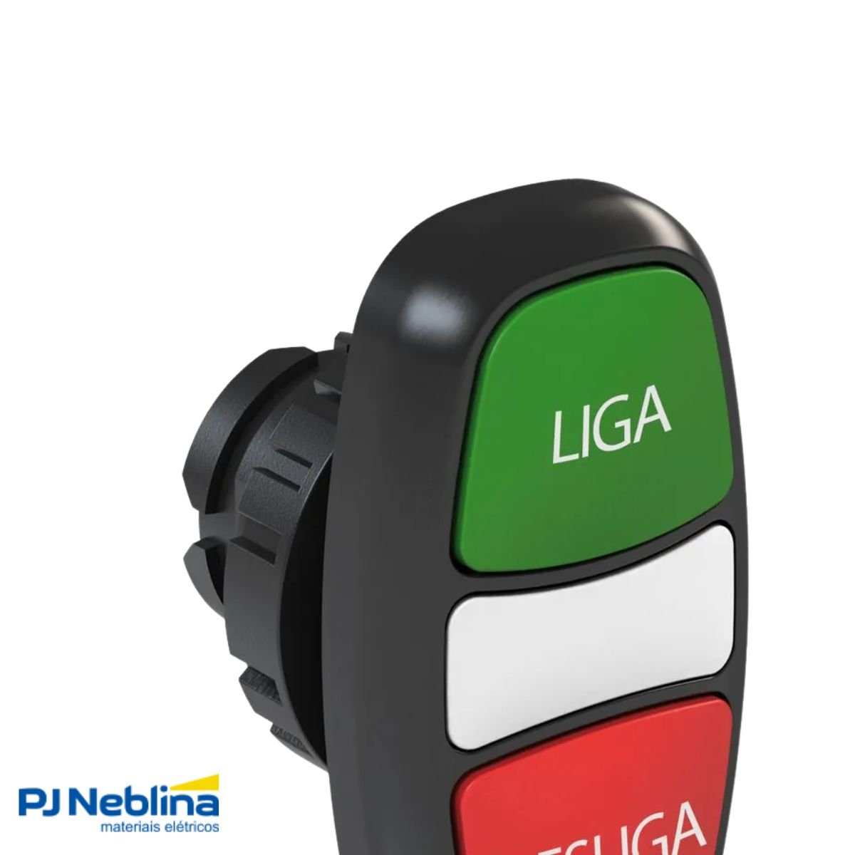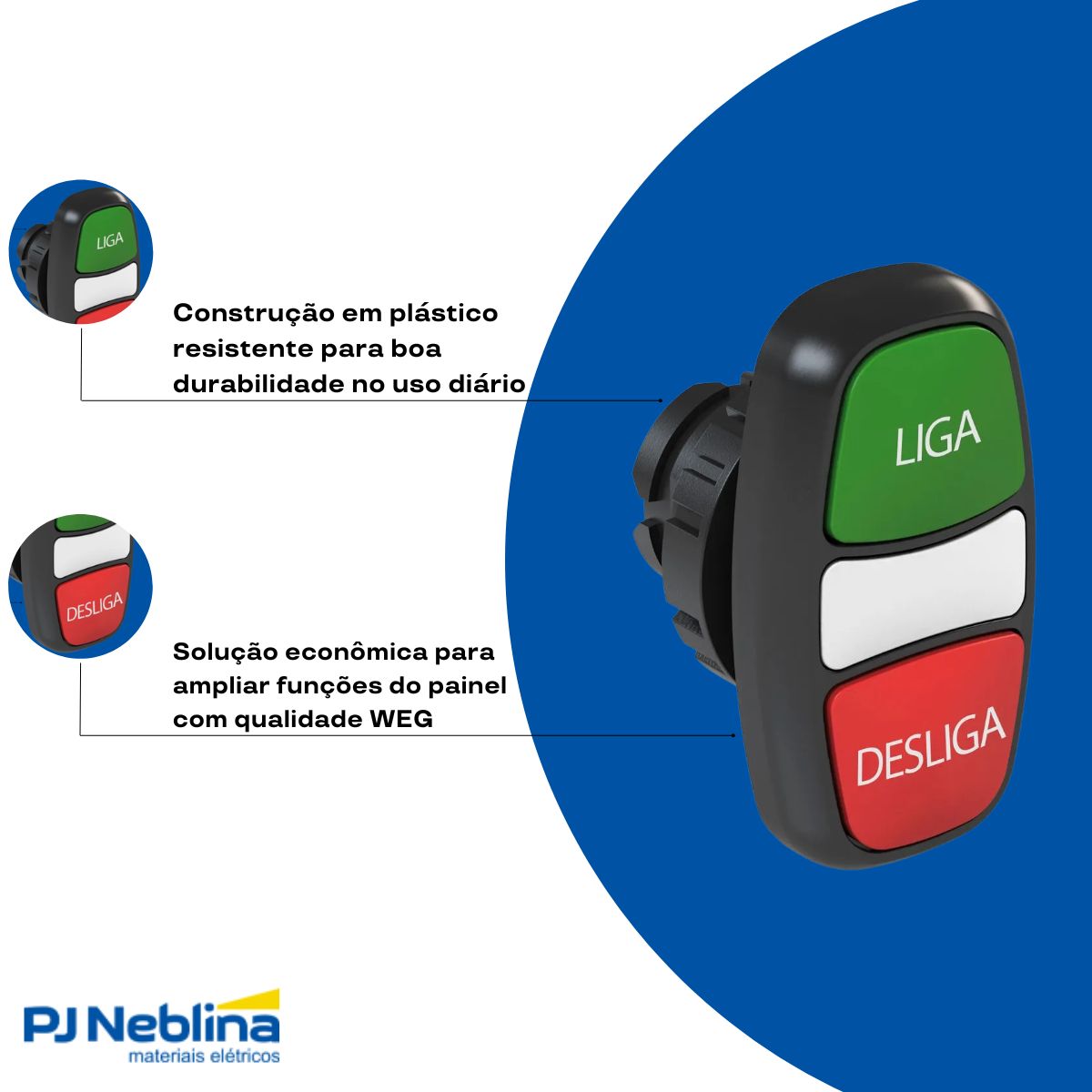 Botão Comando Duplo Pulsador Faceado Iluminado Redondo 22 mm Plástico Verde/Vermelho (Liga/Desliga) - Weg - Código Fabricante: CSW2-BDFI21LD-WH