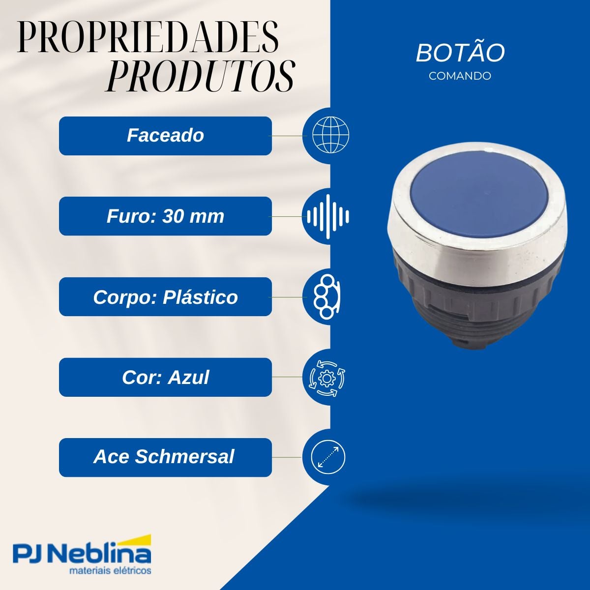 Botão Comando Pulsador Faceado Redondo 30Mm Plástico Azul - Ace Schmersal - Código Fabricante: 13008006