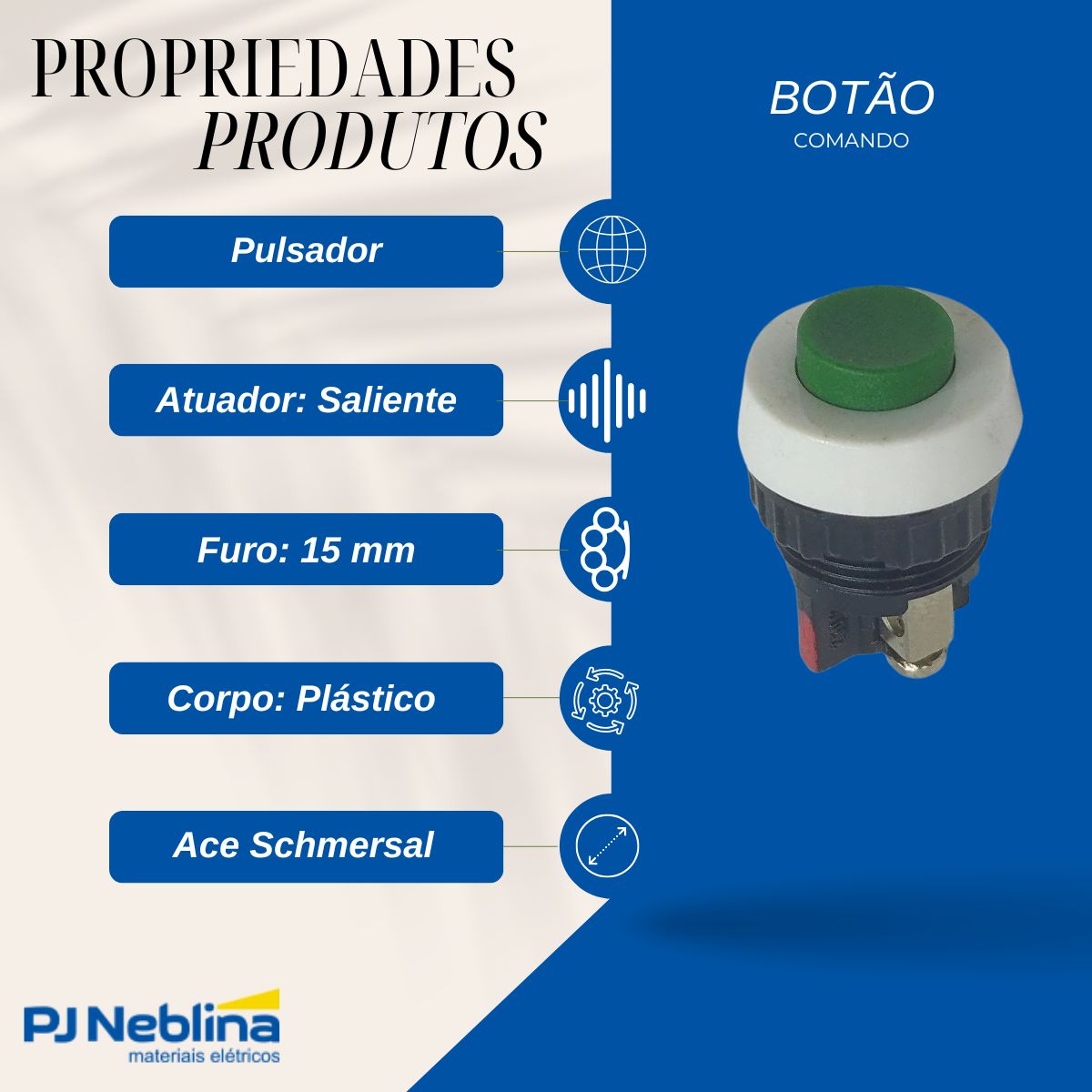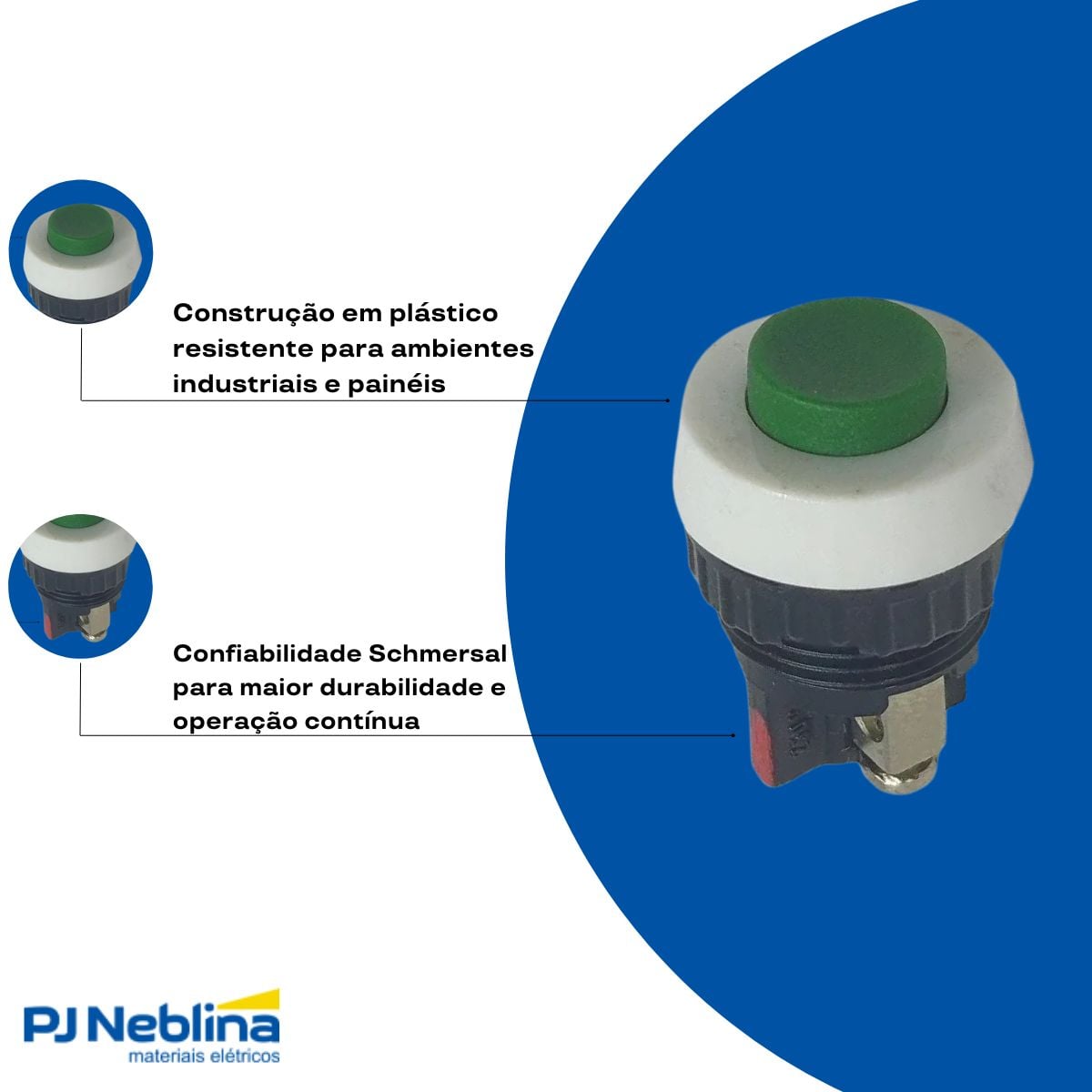 Botão Comando Pulsador Saliente Redondo 15 mm Plástico Verde 1Nf C/Pino - Ace Schmersal - Código Fabricante: 11500505