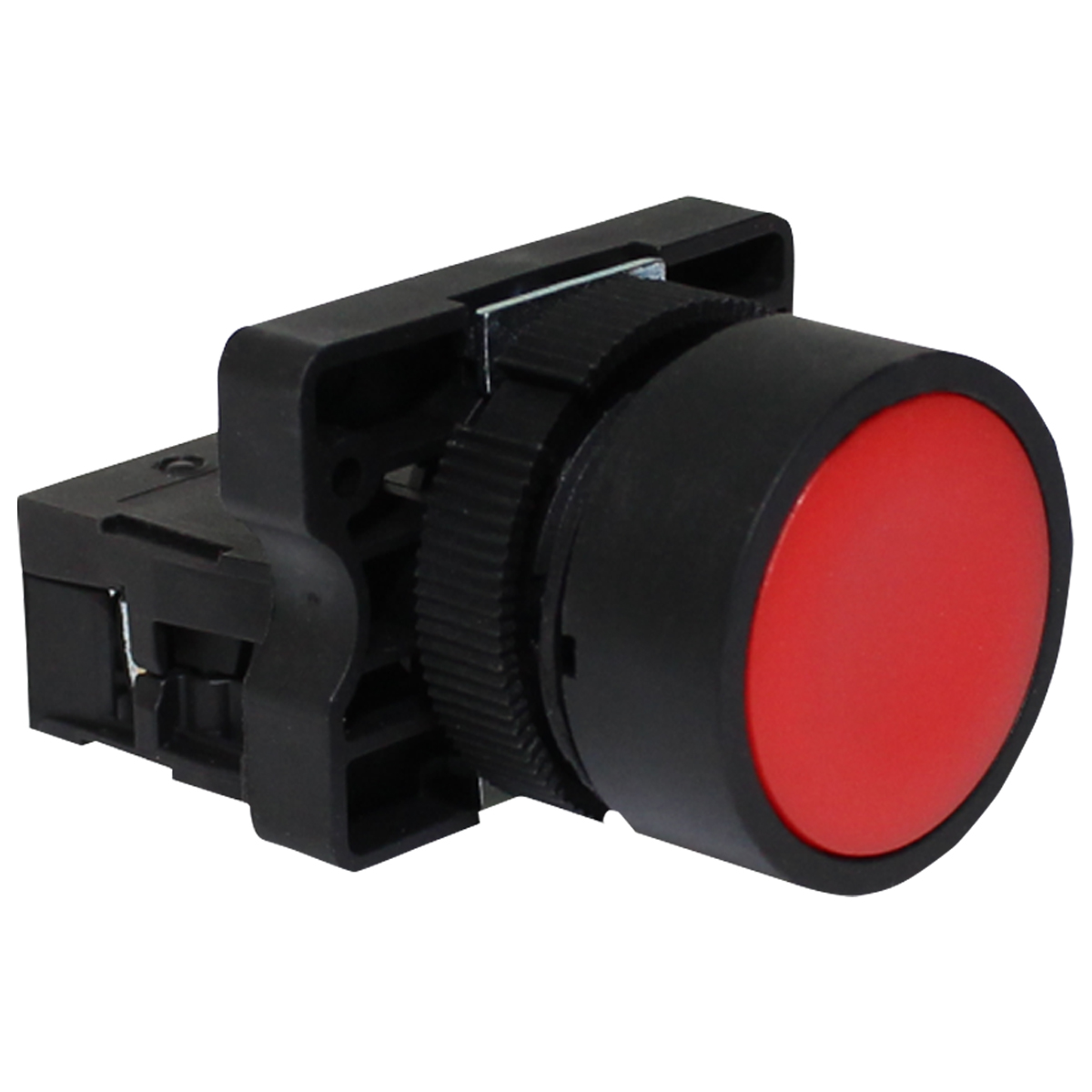 Botão De Comando Faceado Plástico 1Nf 22Mm Vermelho Pulsador Redondo - Metaltex