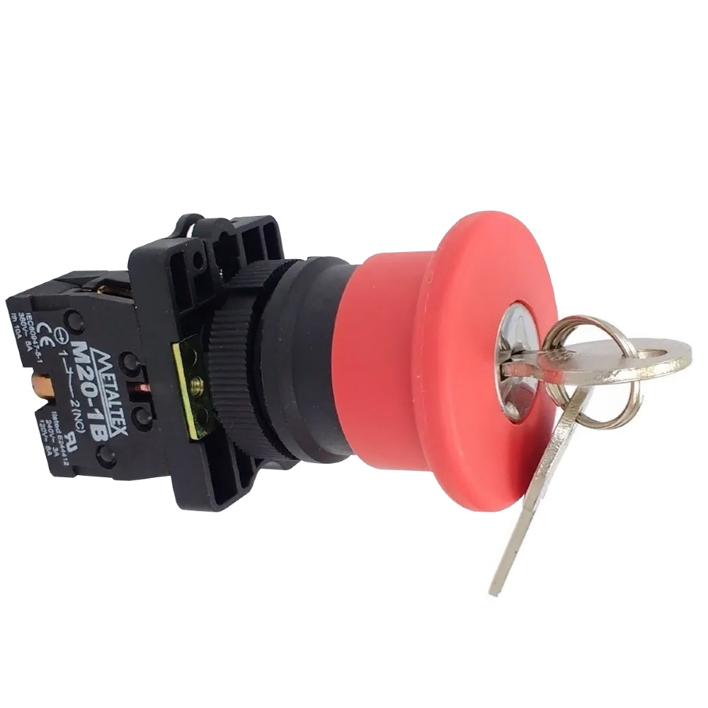 Botão De Emergência Com Chave Vermelho Plástico 1Nf 22mm Metaltex