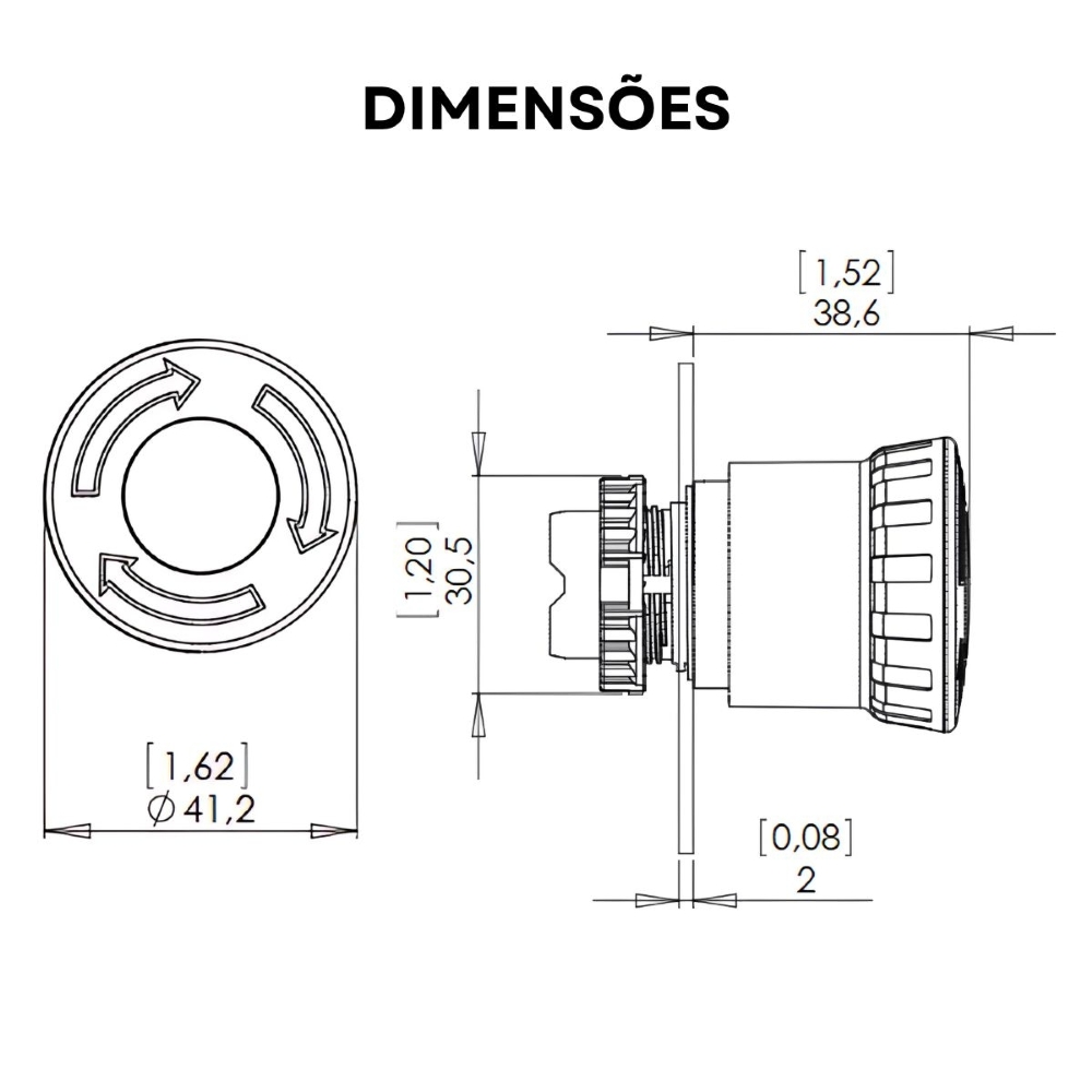 • Diâmetro de 22âmm, compatível com a maioria dos painéis padrão.