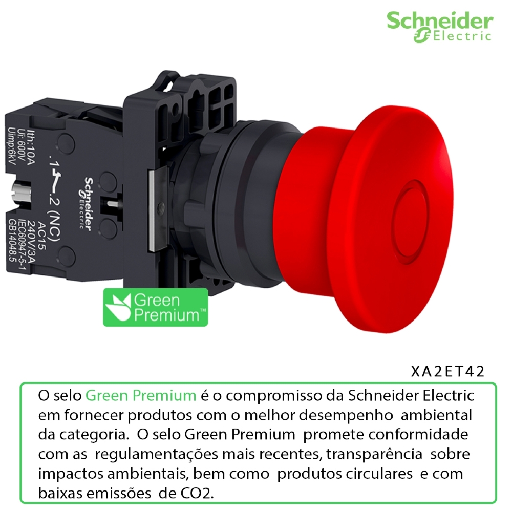 O XA2ET42 é um botão de parada de emergência que faz parte da linha Easy Harmony XA2, uma oferta de botões, interruptores e sinalizadores plásticos de 22mm.
