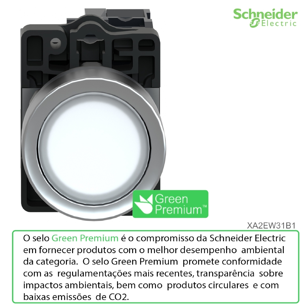 Botão Comando Pulsador Faceado luminoso Redondo 22mm Branco Retorno Por Mola 1na 24vca/cc XA2EW31B1 - Schneider Electric