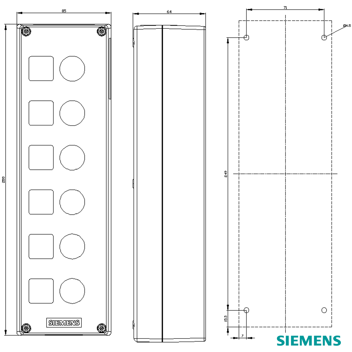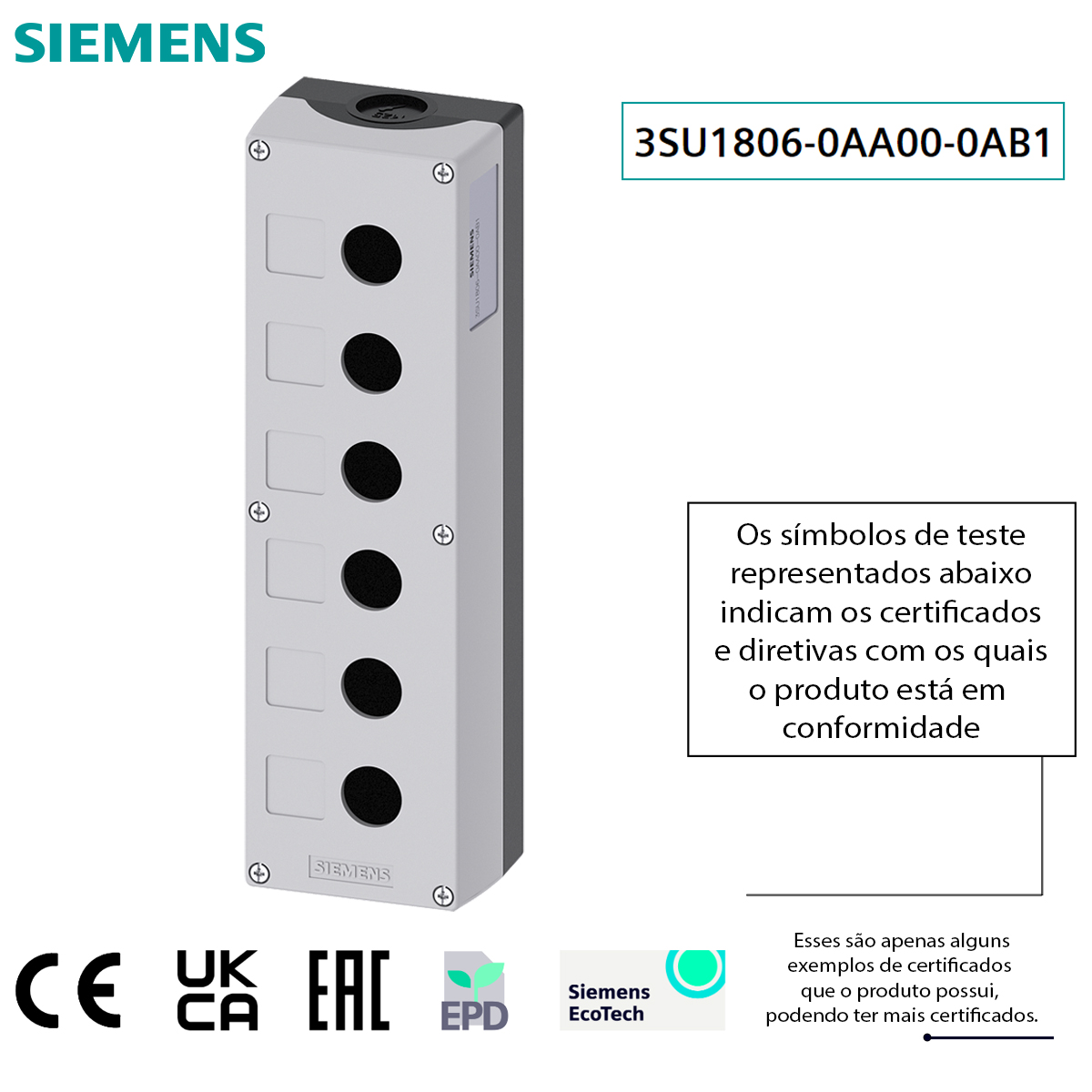 Botoeira Comando Vazia Plástica 6 Furos 22mm Tampa Cinza 3SU18060AA000AB1 Siemens