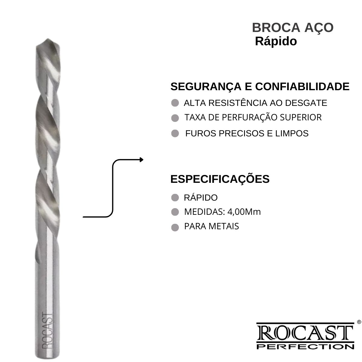 • Diâmetro: 4,00 mm, ideal para furos pequenos e de precisão.