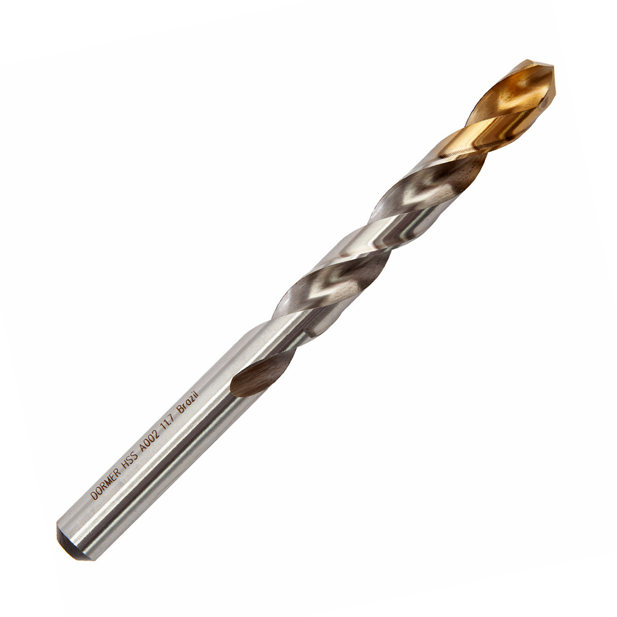 Broca Aço Rápido Hss Hp Paralela 118G Din 338 Para Metal 11,70Mm 142Mm Brilhante/Tin Corte a Direita Auto Centrante A002 - Dormer