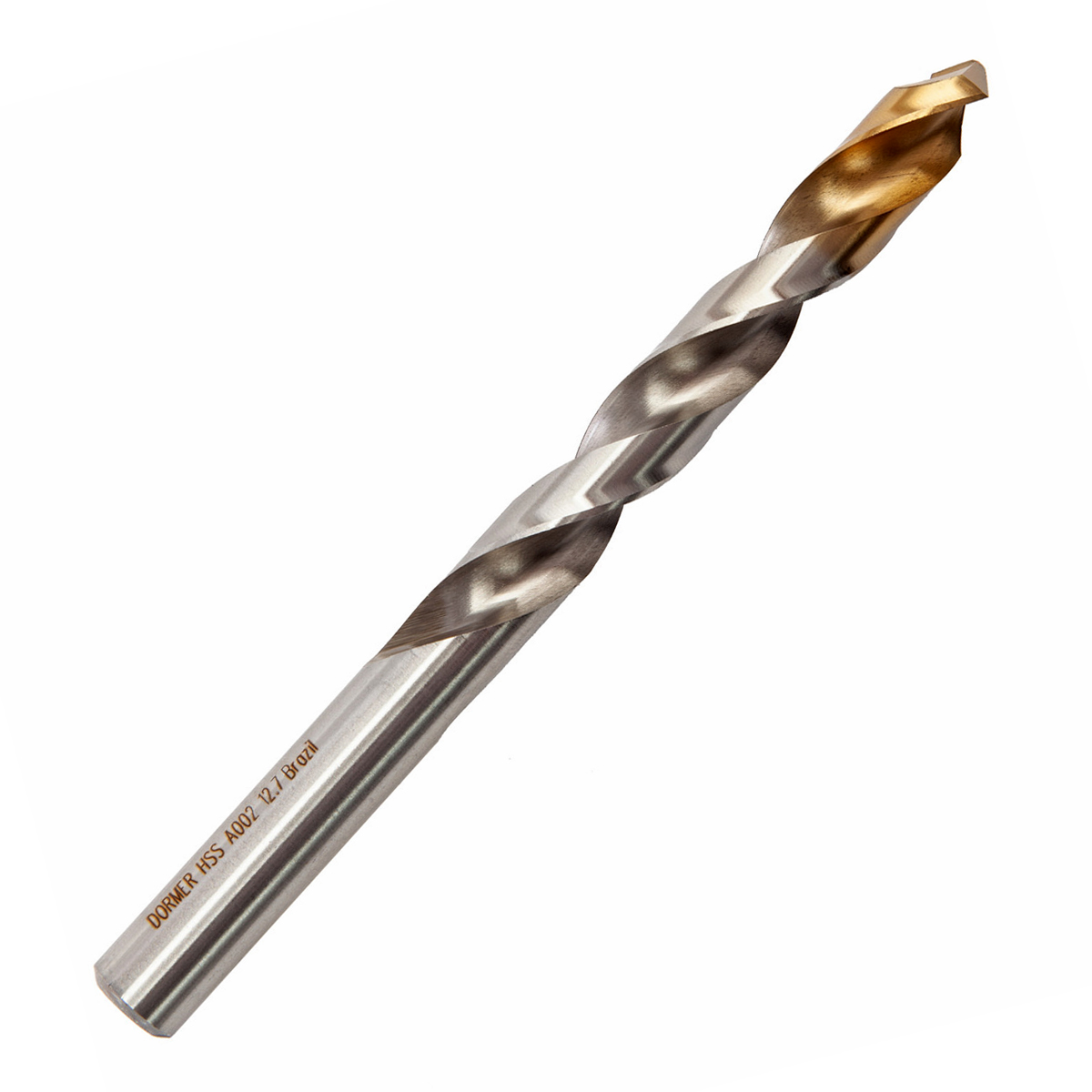 Broca Paralela Aço Rápido Hss Hp 118G Din 338 Para Metal 12,70Mm 151Mm Brilhante/Tin Corte a Direita Auto Centrante A002 - Dormer
