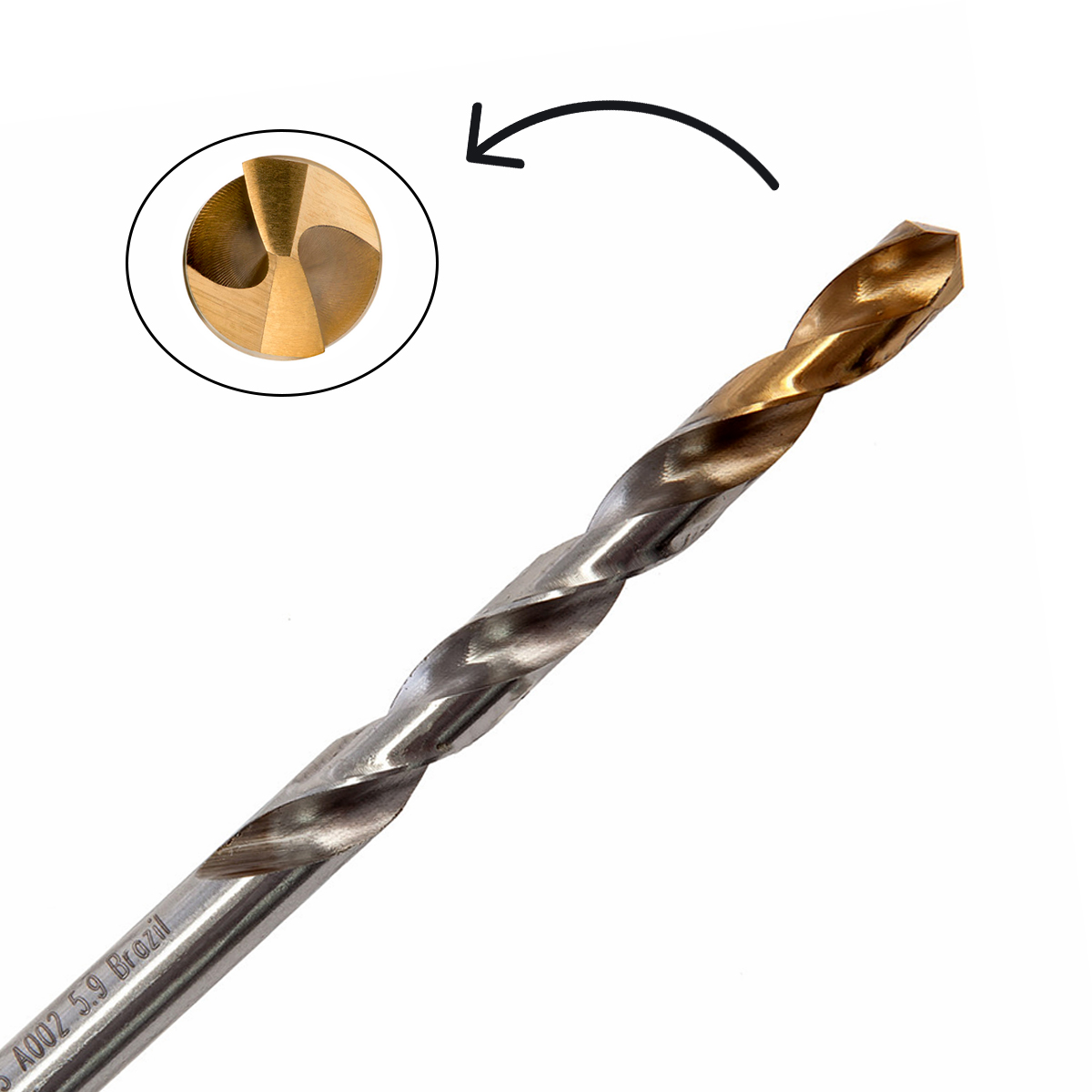 Broca Aço Rápido Hss Hp Din 338 Para Metal 5,90Mm 93Mm Brilhante/Tin Corte a Direita Auto Centrante A002 - Dormer