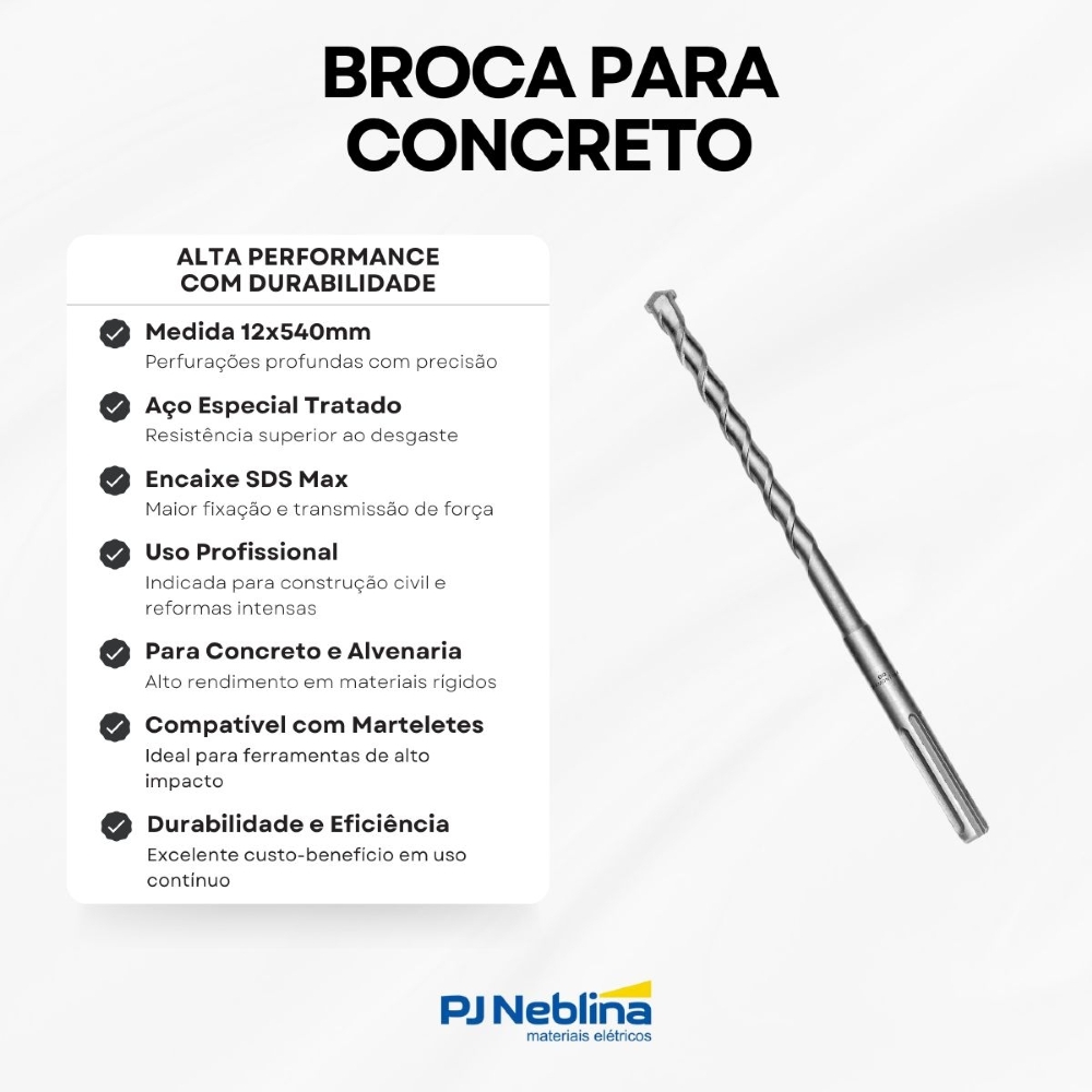 • Broca para concreto de alta resistência, fabricada em aço especial para durabilidade superior.