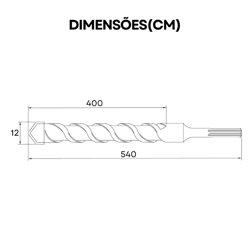 • Medida de 12 mm de diâmetro e 540 mm de comprimento, ideal para perfurações profundas.