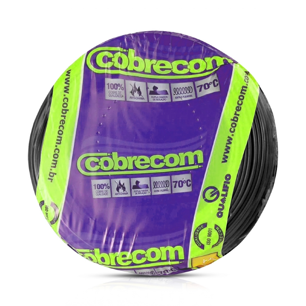 Cabo Flexível 750V Atox 4,00Mm 70G Preto Rolo 100 Metros Cobrecom