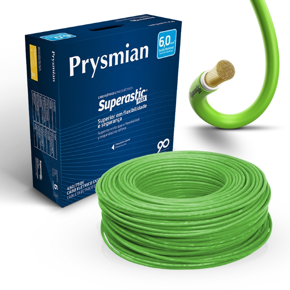 Com mais de 140 anos de experiência, sendo 90 deles em território brasileiro, o Grupo Prysmian é uma empresa multinacional que foca na revolução e tecnologia diariamente. Nosso trabalho em presença global de pesquisas, desenvolvimento e fabricação de cabos nos permite ser pioneiros no mercado. Tendo como principais produtos fios e cabos elétricos, acessórios e serviços para segmentos de elétrica, industrial, construção civil, telecomunicações, transmissão de dados, extração de petróleo e fibras ópticas. Adquirindo o nosso Cabo Superastic 6,00mm Verde 100 Metros você garante os melhores resultados desejados.
