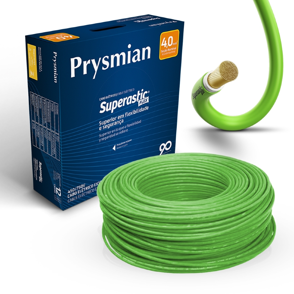 Com mais de 140 anos de experiência, sendo 90 deles em território brasileiro, o Grupo Prysmian é uma empresa multinacional que foca na revolução e tecnologia diariamente. Nosso trabalho em presença global de pesquisas, desenvolvimento e fabricação de cabos nos permite ser pioneiros no mercado. Tendo como principais produtos fios e cabos elétricos, acessórios e serviços para segmentos de elétrica, industrial, construção civil, telecomunicações, transmissão de dados, extração de petróleo e fibras ópticas. Adquirindo o nosso Cabo Superastic 4,00mm Verde 100 Metros você garante os melhores resultados desejados.