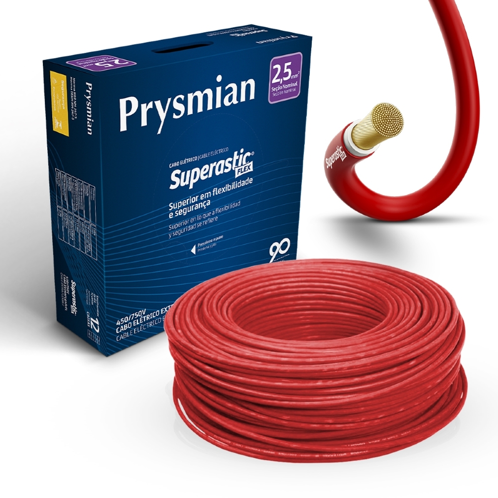 Com mais de 140 anos de experiência, sendo 90 deles em território brasileiro, o Grupo Prysmian é uma empresa multinacional que foca na revolução e tecnologia diariamente. Nosso trabalho em presença global de pesquisas, desenvolvimento e fabricação de cabos nos permite ser pioneiros no mercado. Tendo como principais produtos fios e cabos elétricos, acessórios e serviços para segmentos de elétrica, industrial, construção civil, telecomunicações, transmissão de dados, extração de petróleo e fibras ópticas. Adquirindo o nosso Cabo Superastic 2,50mm Vermelho 100 Metros você garante os melhores resultados desejados.