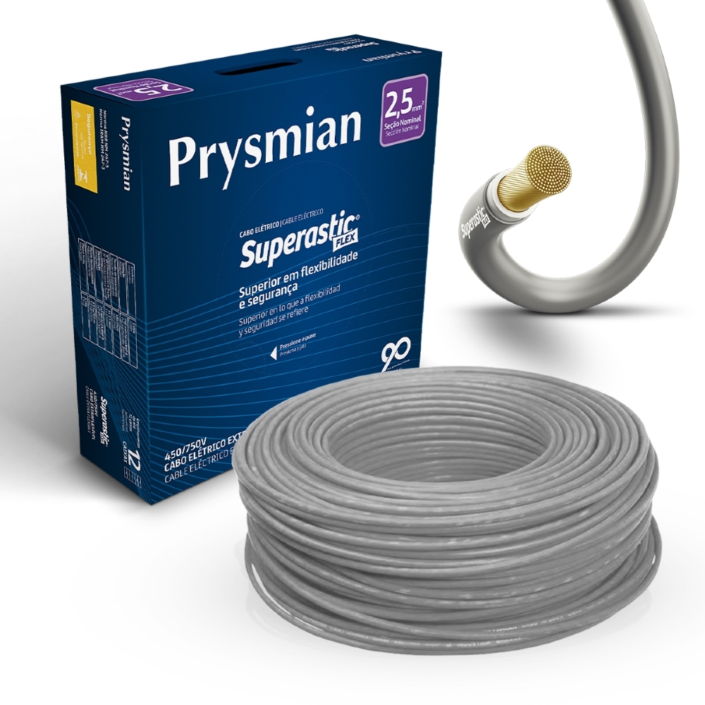 Cabo Flexível Superastic PVC 2,50mm 70g 750V Cinza 100 Metros Prysmian