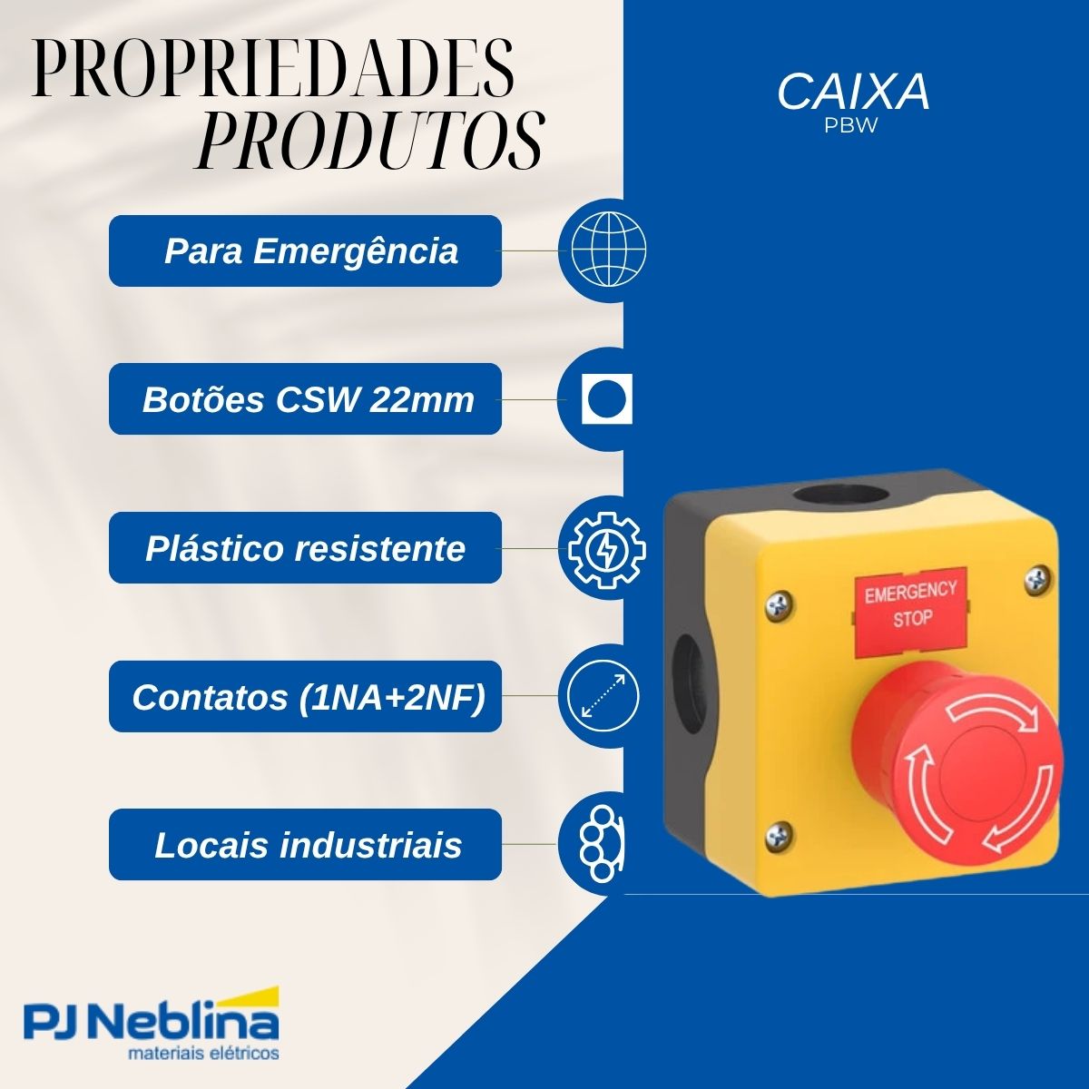 Tipo: Caixa PBW para emergência (comando CSW)