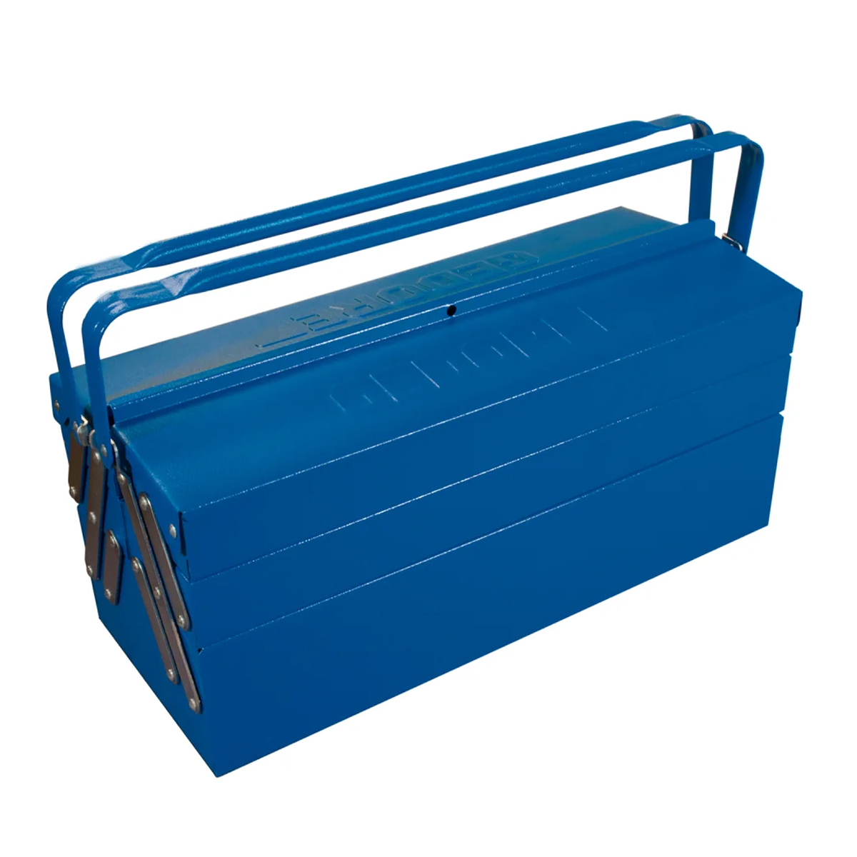 Em chapa reforçada de aço especial com espessura: 0,6 mm. Estrutura e alça com acabamento em pintura na cor azul padrão Gedore, articulação com acabamento niquelado e cromado. Caixa resistente e soldada. A caixa 1335 possui furo com diâmetro de 8,3 mm para utilização de cadeado (não incluso). Ideal para armazenar as ferramentas utilizadas na manutenção de veículos, máquinas e outras aplicações. É fornecida com ou sem ferramentas.