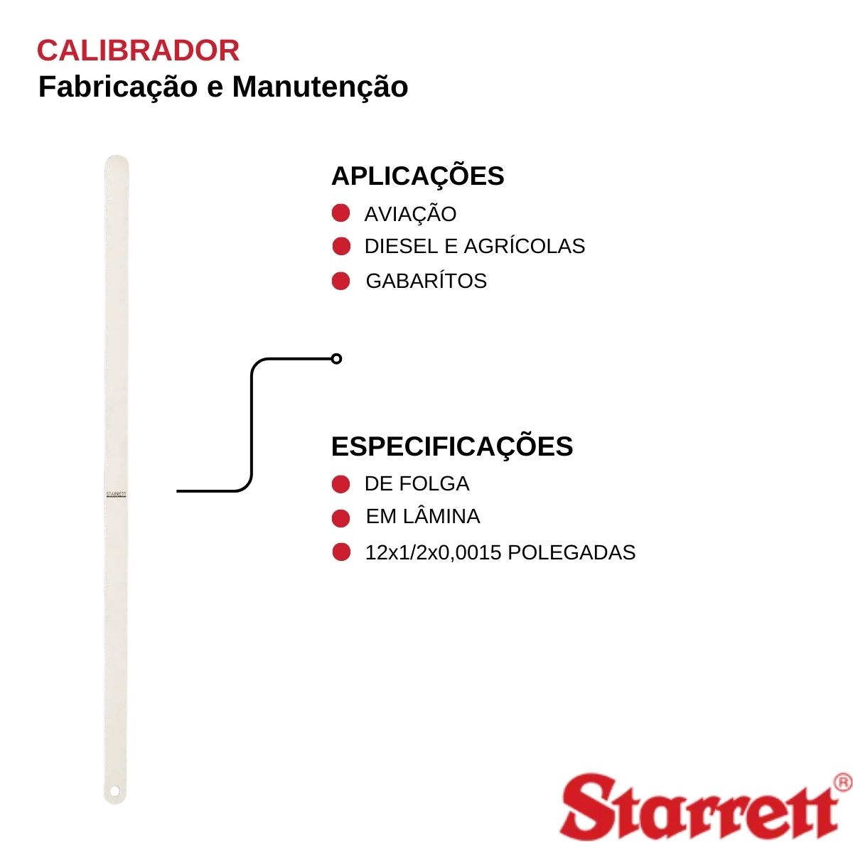 Completando 60 anos de atuação no mercado nacional, a Starrett se tornou uma entre as maiores fabricantes de ferramentas do mundo. Desenvolvendo o Calibrador De Folga Em Lâmina 12x1/2x0,0015 Polegadas 667-1.1/2, a Starret traz e garante aos nossos clientes, a total satisfação, com o maior nível de qualidade, disponibilidade, categoria e funcionamento.