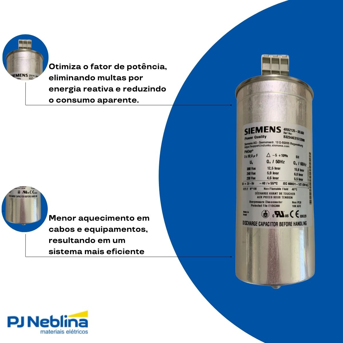- Benefícios: Reduz multas por baixo fator de potência, melhora a qualidade da energia.