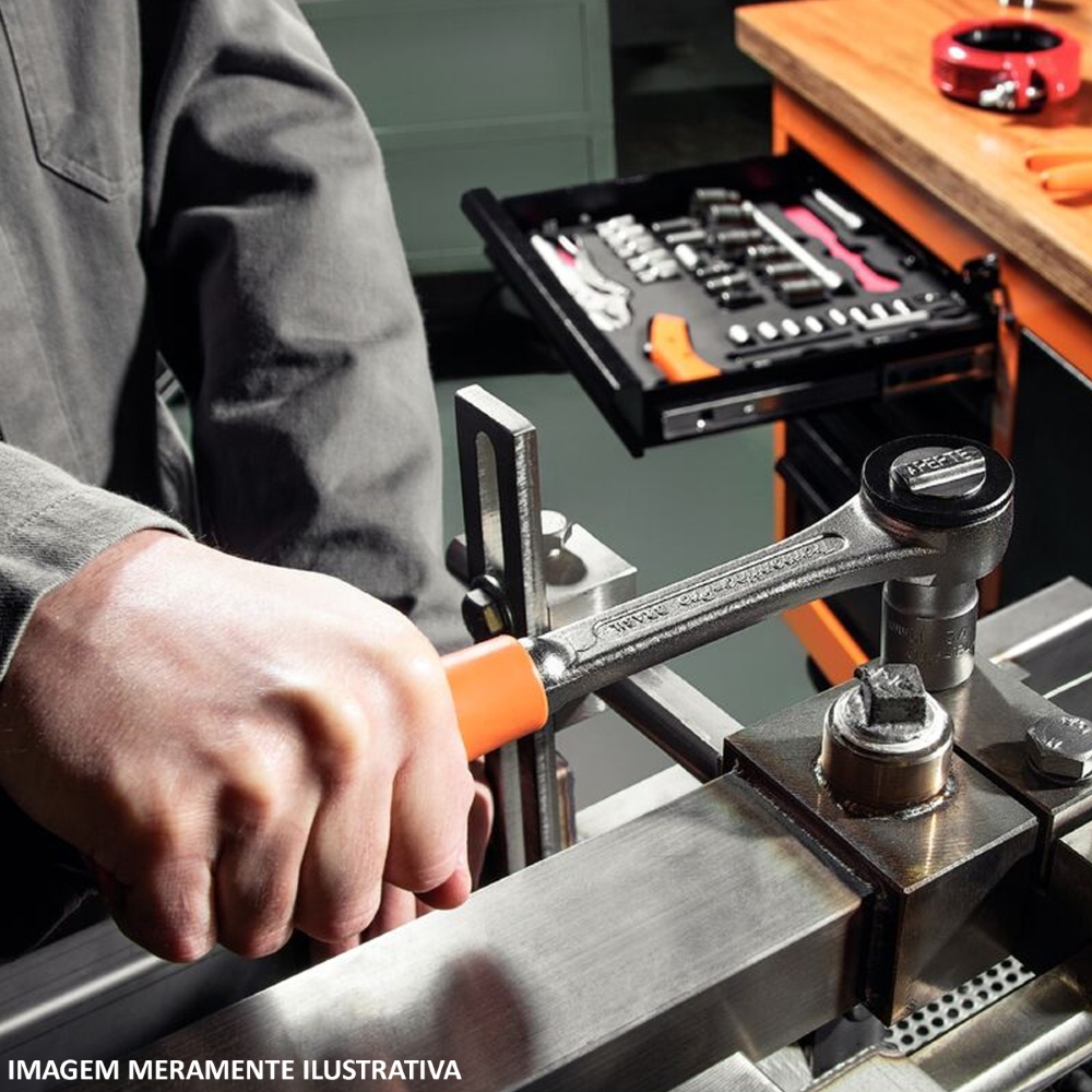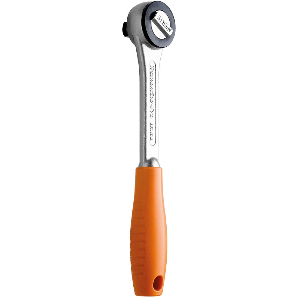Chave De Aperto Catraca Para Soquetes Reversível 45 Dentes Encaixe 1/2 Cabo Curto Laranja Tramontina Pro