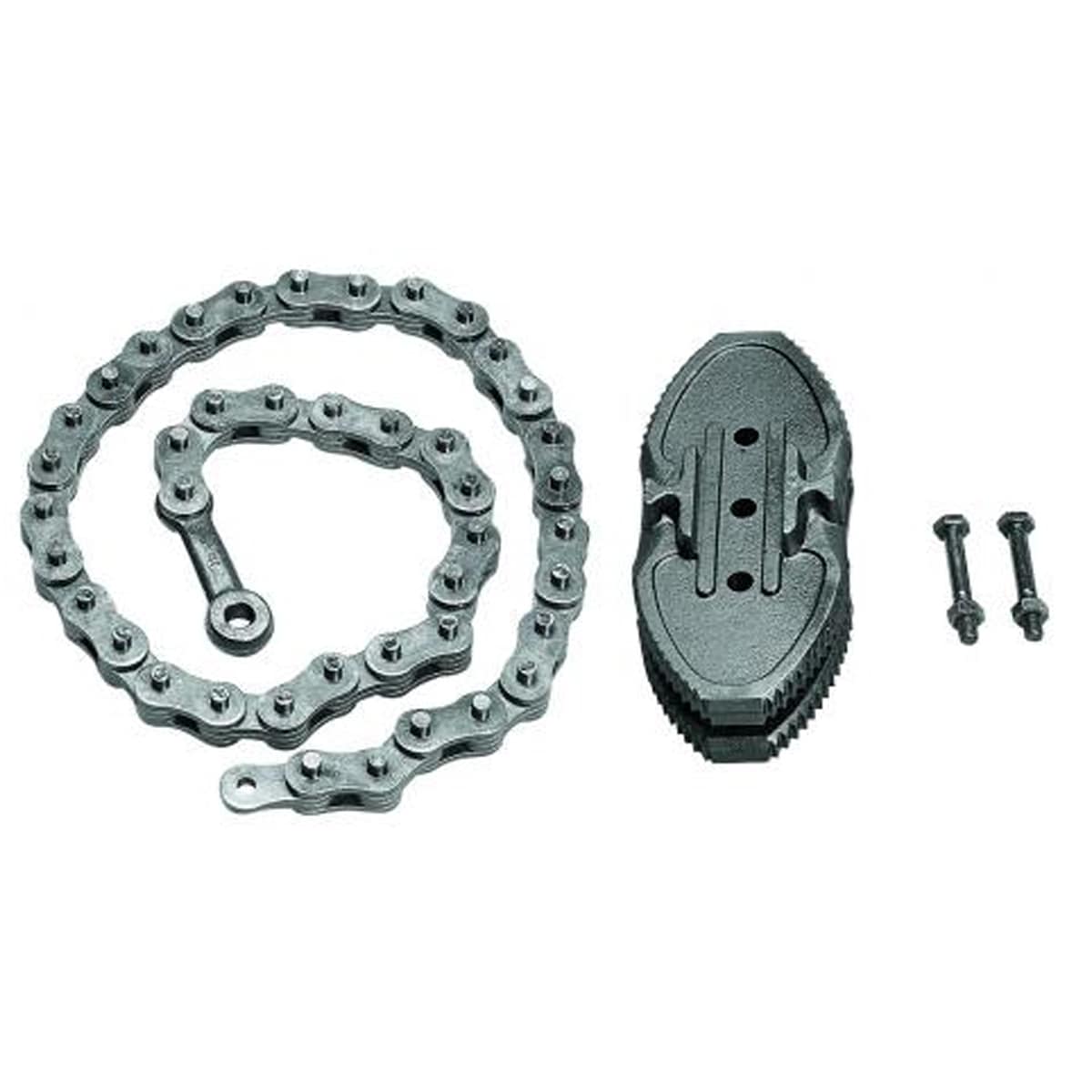 Cabo e mordente em aço Gedore-Vanadium, corrente e fixadores em aço especial. Cabo com acabamento em pintura na azul padrão Gedore, mordentes, corrente e fixadores escurecidos. Indicada para utilização em grandes tubulações.