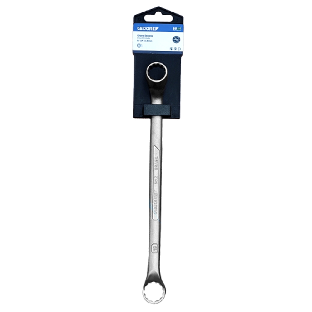 Aço Gedore-Vanadium. Acabamento niquelado e cromado. Pescoço longo, cabeças inclinadas, parede fina e medidas diferentes em cada extremidade Unit Drive. Chave estrela bitolas: 1/4x5/16" à 1.1/8x1.1/4", são encarteladas para autoserviço.