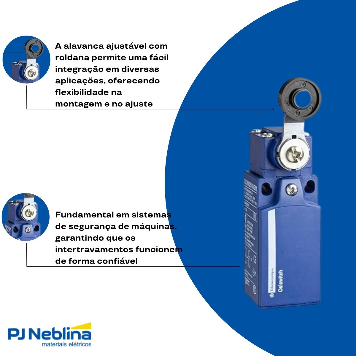 - Tipo: Chave fim de curso, projetada para detecção de posição e movimento.