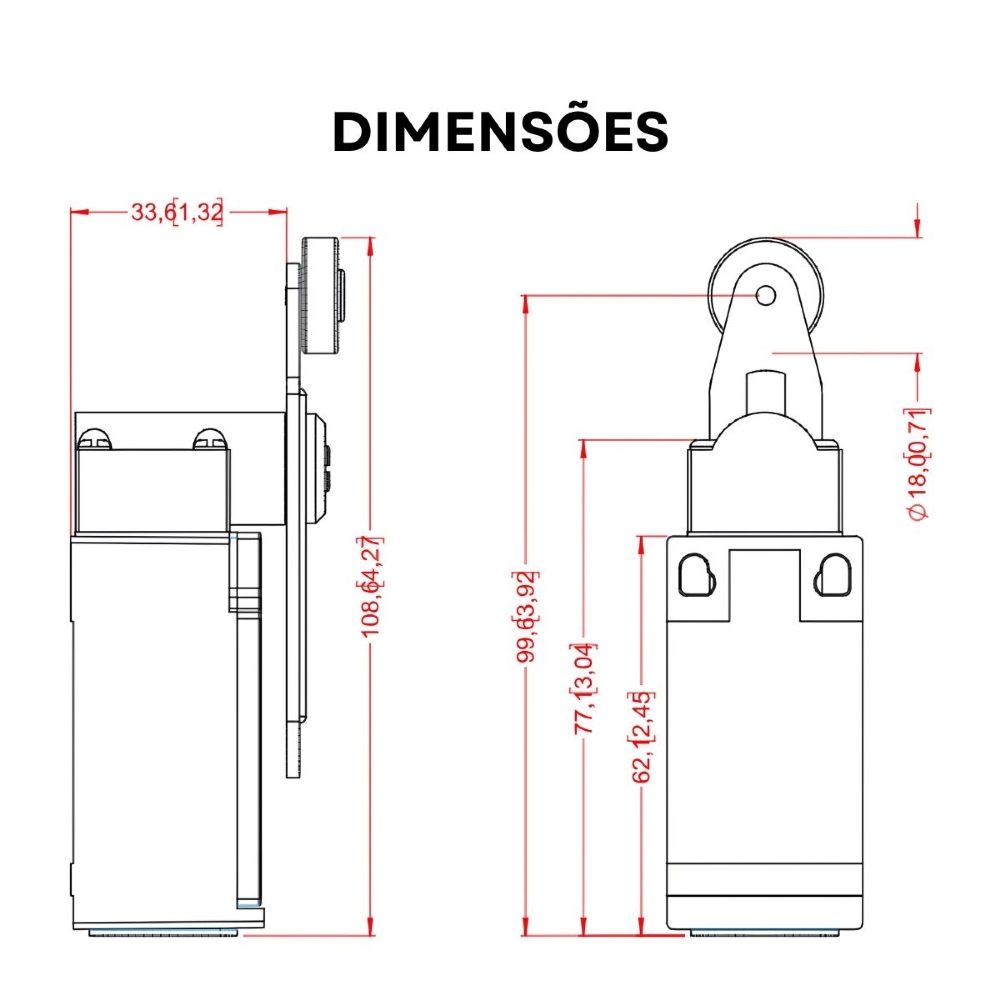 • Chave fim de curso com alavanca e roldana de 14âmm, ideal para acionamentos leves e precisos.