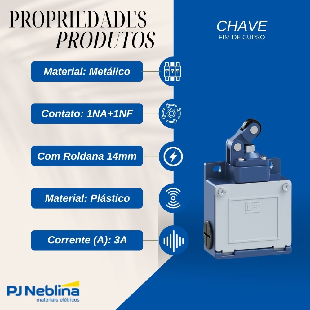 Chave Fim De Curso Alavanca Com Roldana 14Mm 3A 1Na+1Nf Ip65 17180911 Weg