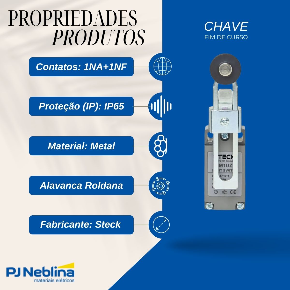 Chave Fim De Curso Metal 1 Ent Al Rold Comp Va - Steck - Código Fabricante: SM1UZ11