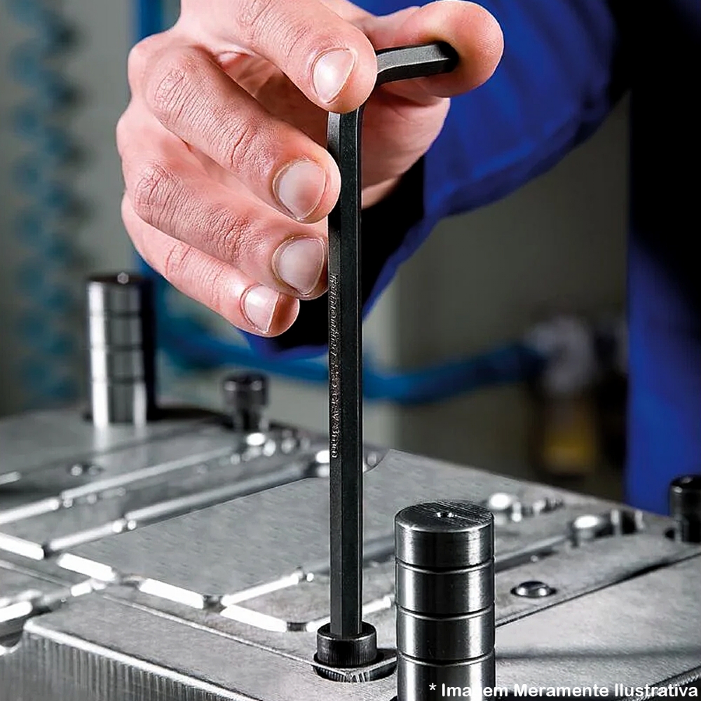 Seu corpo em forma de L com 2 braços de diferente comprimento, permite a aplicação de torque em parafusos posicionados em diferentes profundidades.