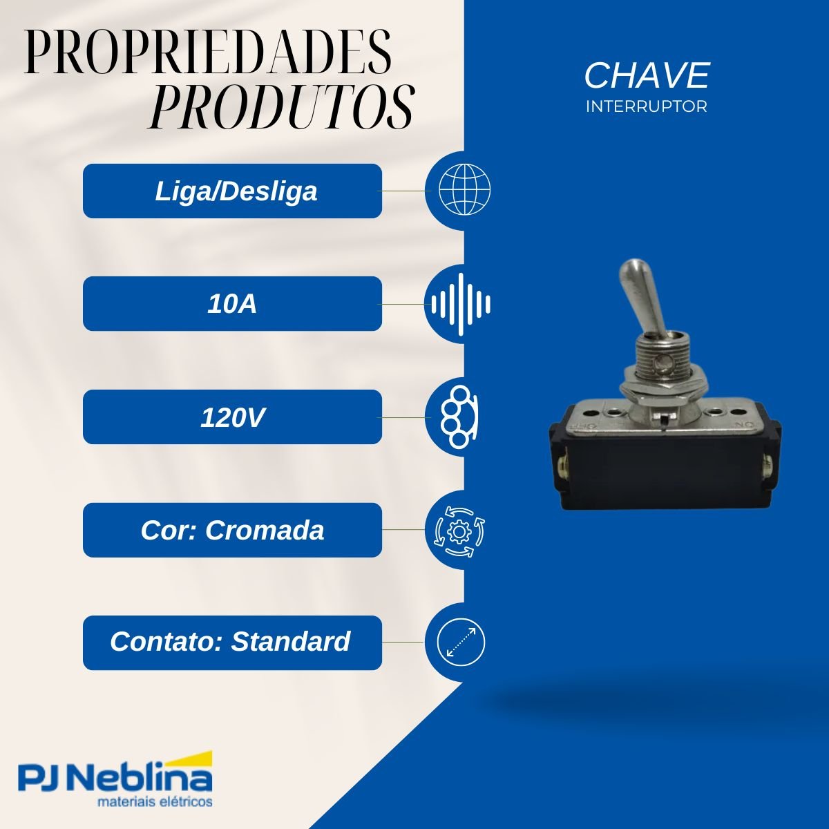Chave Interruptor Alavanca Metálica Bipolar Liga/Desliga 10A 120V Cromada Standard Terminal Parafuso - Margirius - Código Fabricante: PA0098