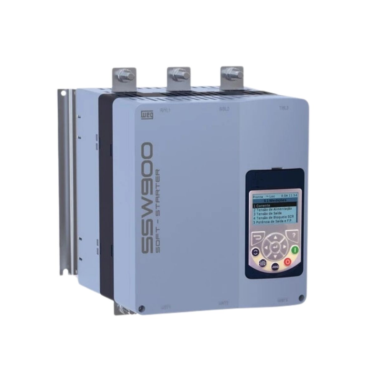 Soft-starters são acionamentos dedicados à aceleração e desaceleração suave de motores elétricos trifásicos, através do controle da tensão aplicada ao motor. Com o ajuste adequado das variáveis, o torque produzido é ajustado à necessidade da carga, garantindo, desta forma, que a corrente solicitada seja a mínima necessária para a partida. A SSW900 é uma soft-starter com controle nas três fases do motor, by-pass incorporado e controle de torque. Destinada para acionamento de motores de 3 a 2650 cv.