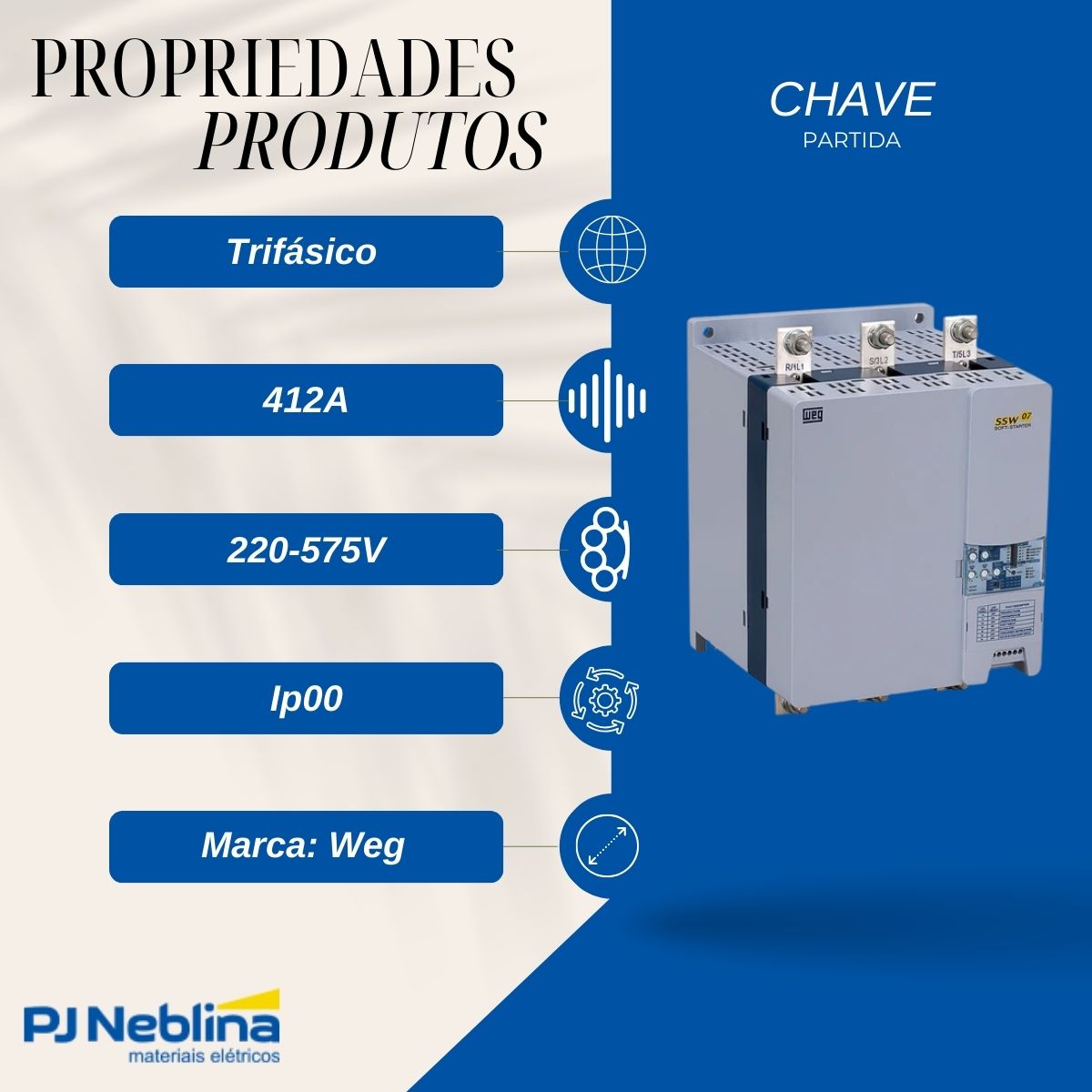 Chave Partida Softstarter Trifásico 412A 220-575V 330Kw Ip00 - Weg - Código Fabricante: SSW070412T5SH2Z
