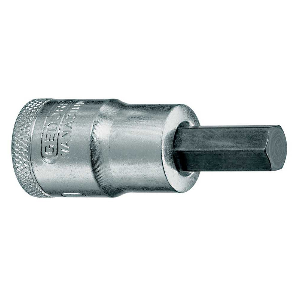 Aço Gedore-Vanadium. Soquete com acabamento niquelado e cromado/ zincado, com ponteira escurecida. Para trabalhar com acessórios manuais com encaixe quadrado 12,7 mm (1/2”), conforme DIN 3120 - C 12.5, ISO 1174. Indicada para parafusos com perfil de encaixe sextavado interno.