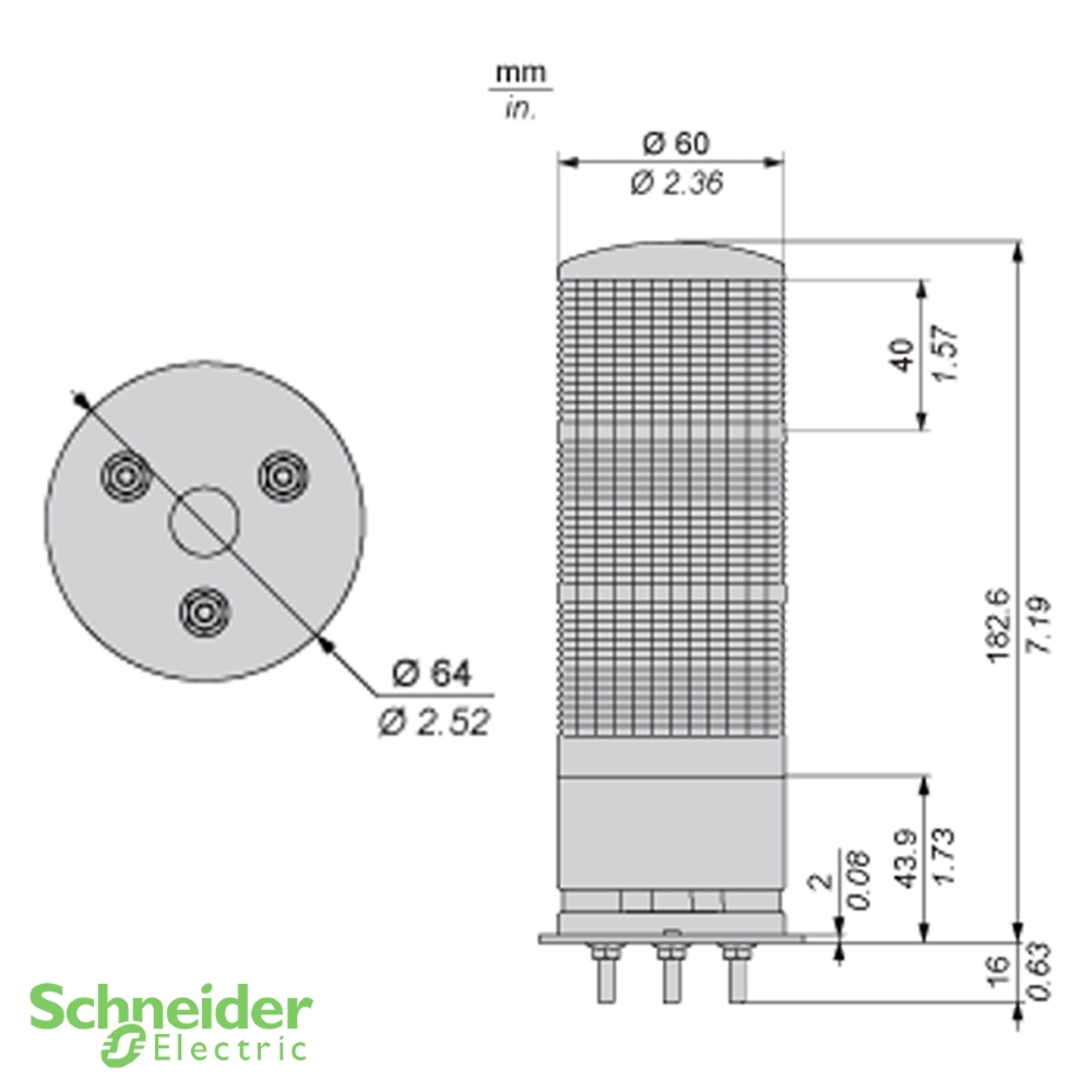 Coluna Luminosa 3 Elementos Led D60mm Vermelho/Amarelo/Verde 24Vca/Cc Ip53 Montagem Direta Base XVGB3W Schneider Electric