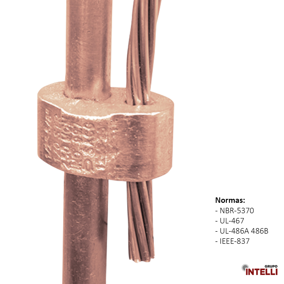 Características: Conexão por compressão. Alta resistência à corrosão. Pode ser enterrado diretamente no solo ou