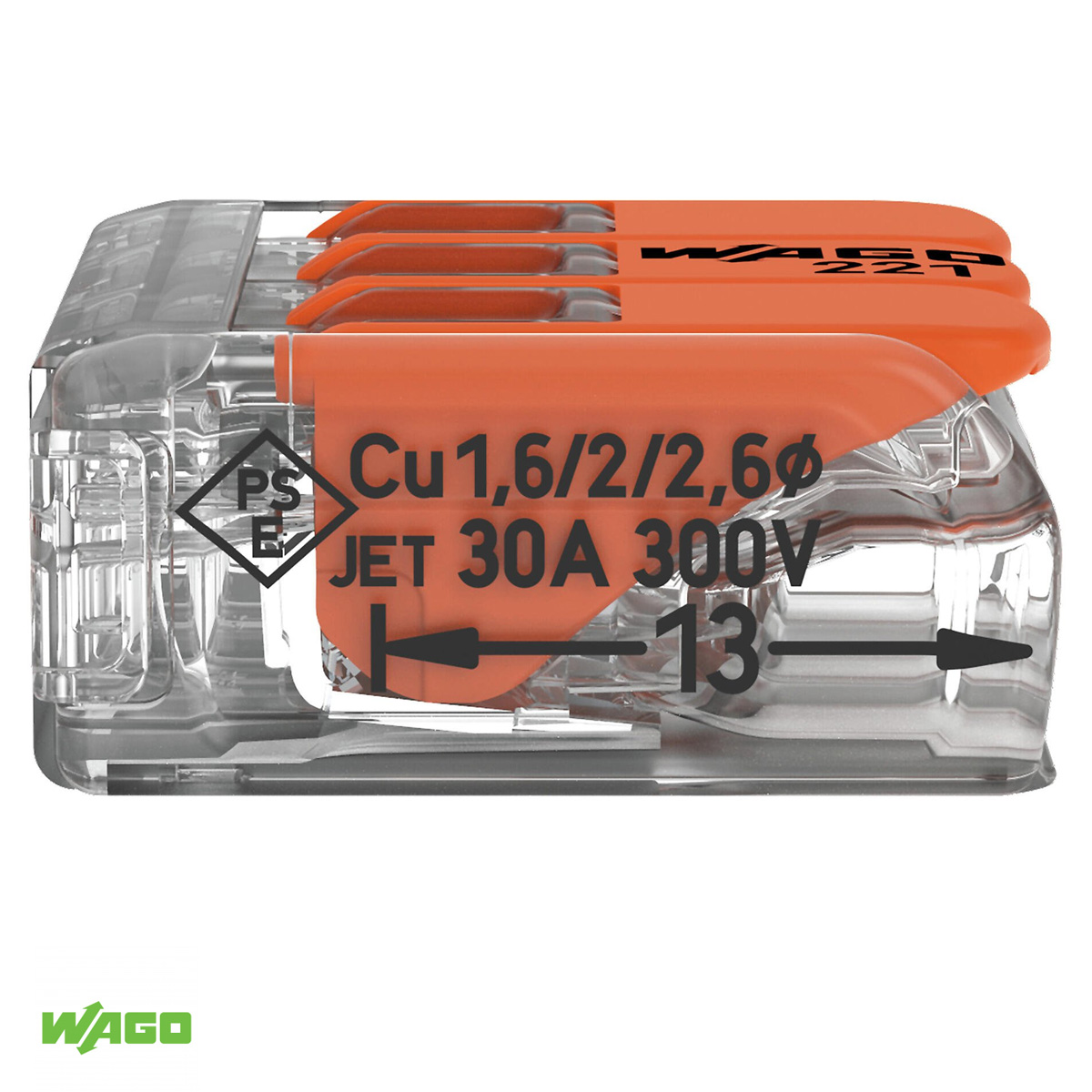 Conector Elétrico Emenda Rápido Poliamida Laranja/Transparente 3 Polos 6,00Mm 41A 221-613 Wago